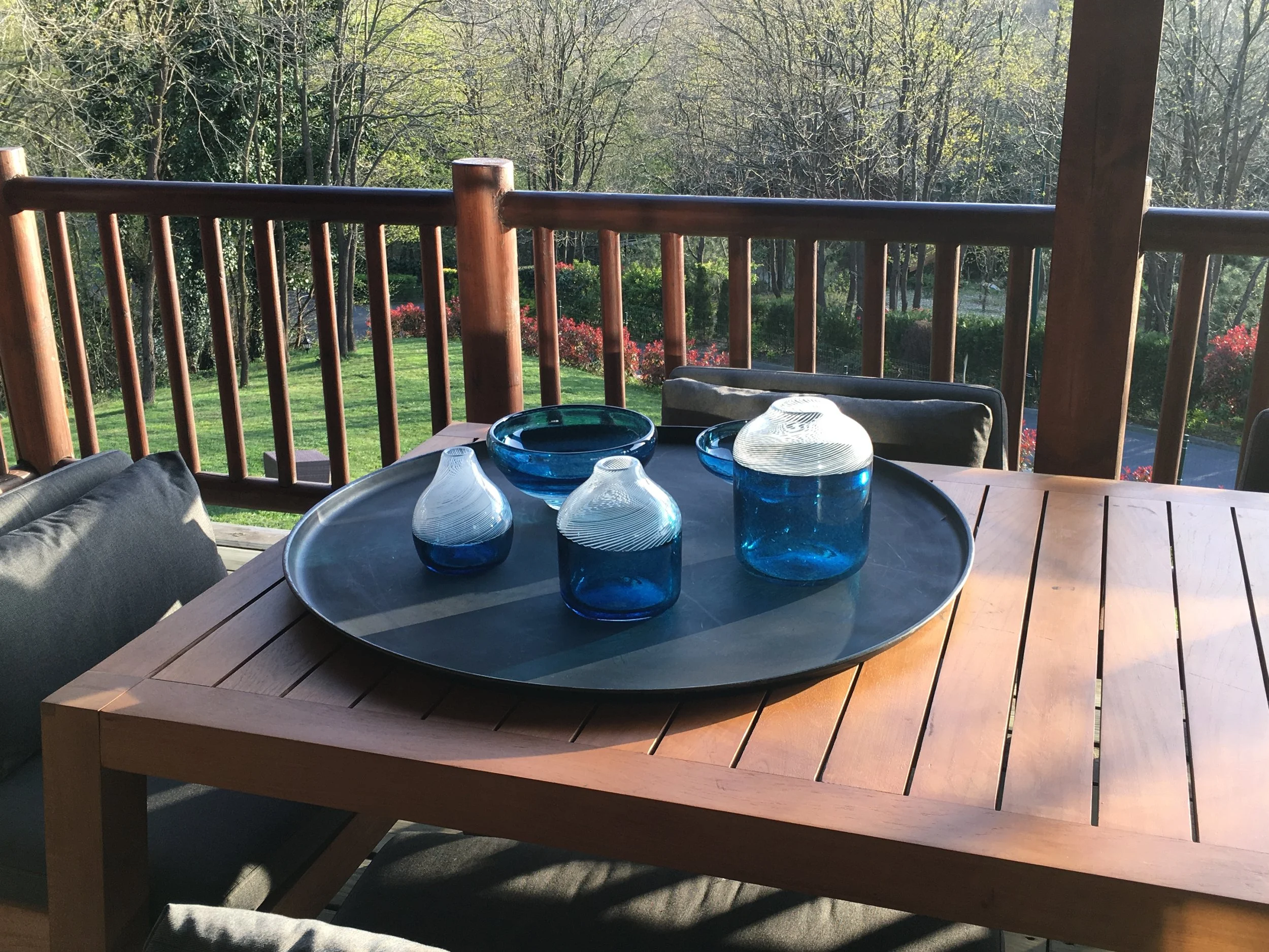 Idyllic Summer bowls are great for grapes, plums, peaches along with other snacks. We love this ripple shadows created by these handmade vessels. The colour and movements connect our audience to serene Mediterranean coasts where this collection was inspired.