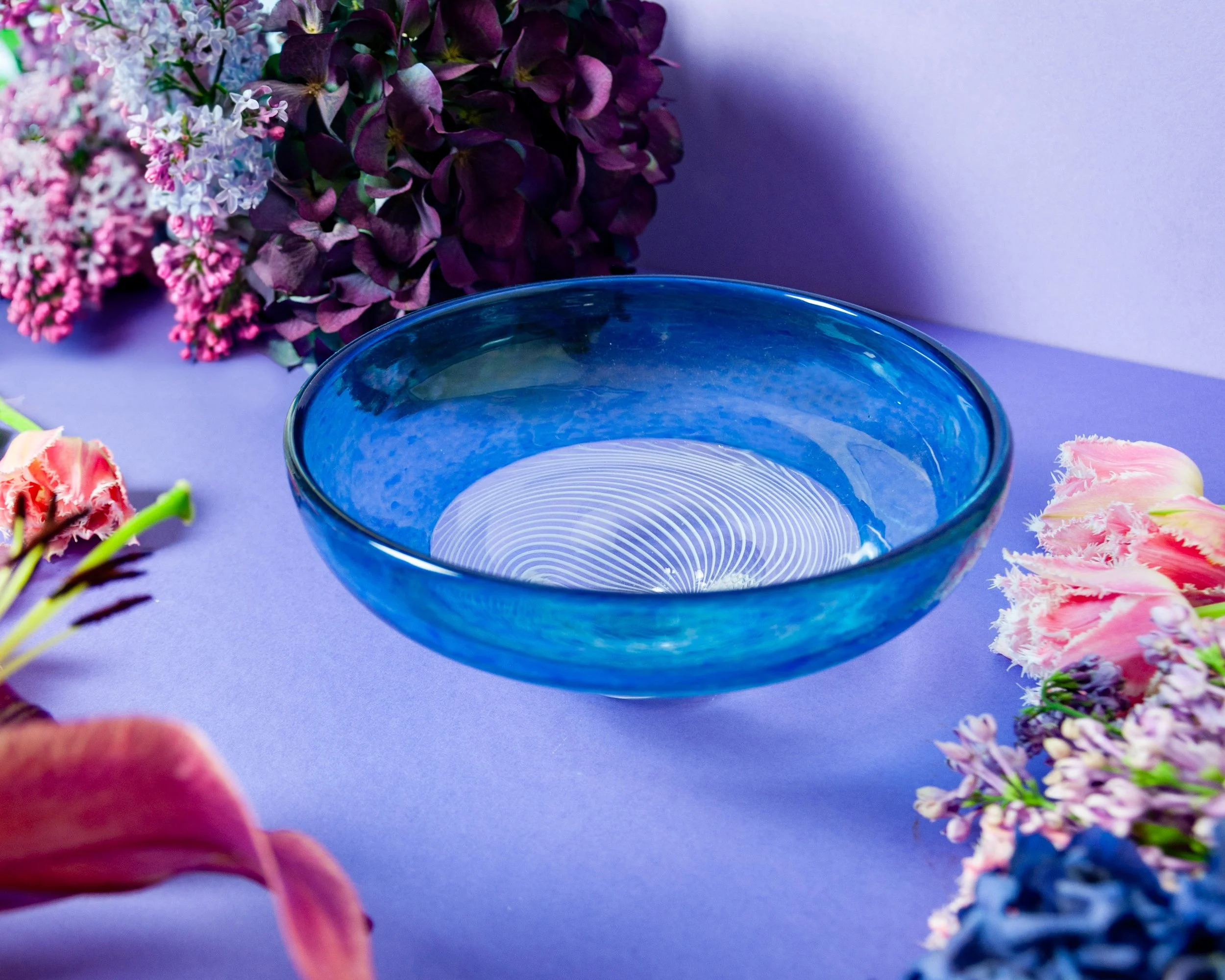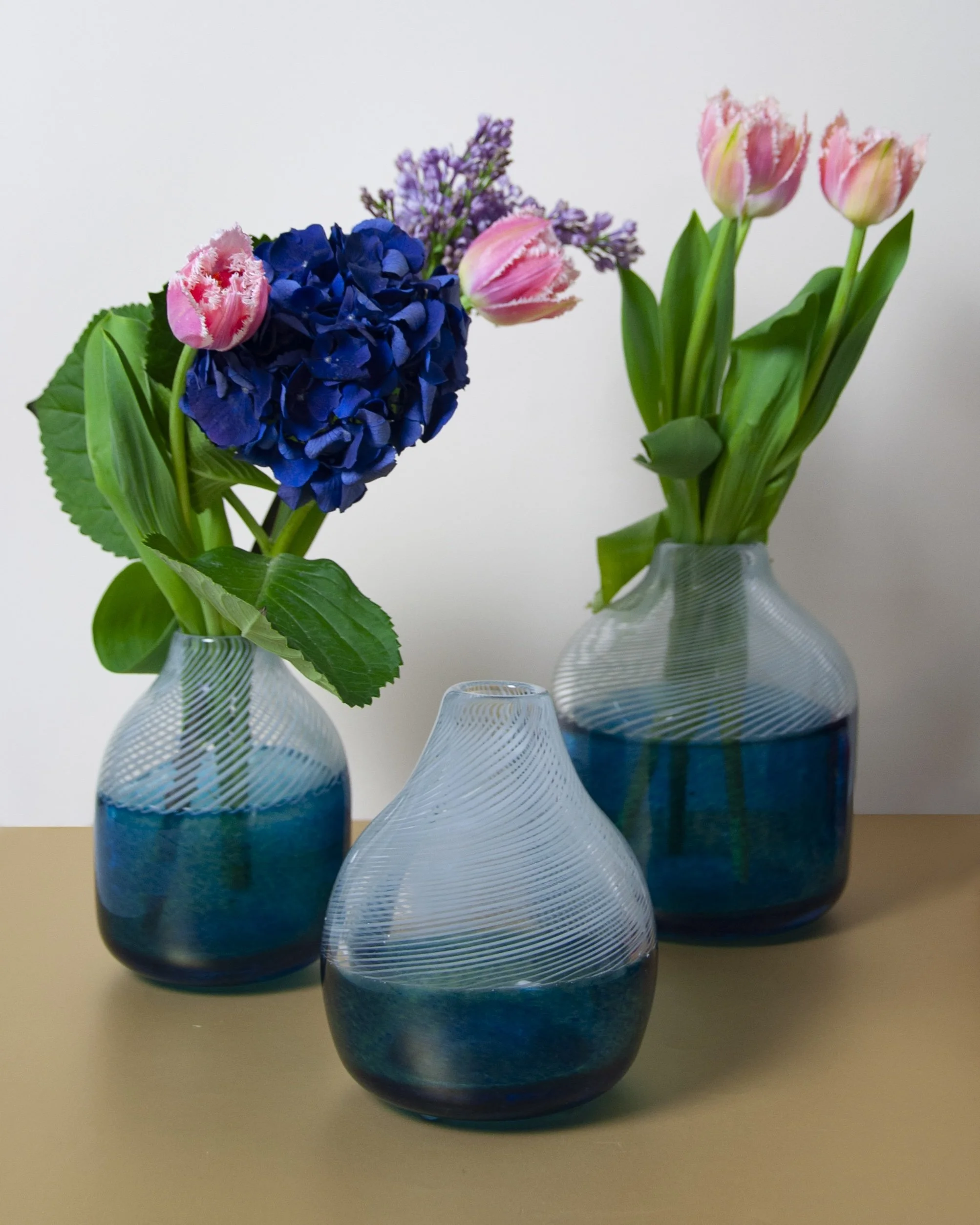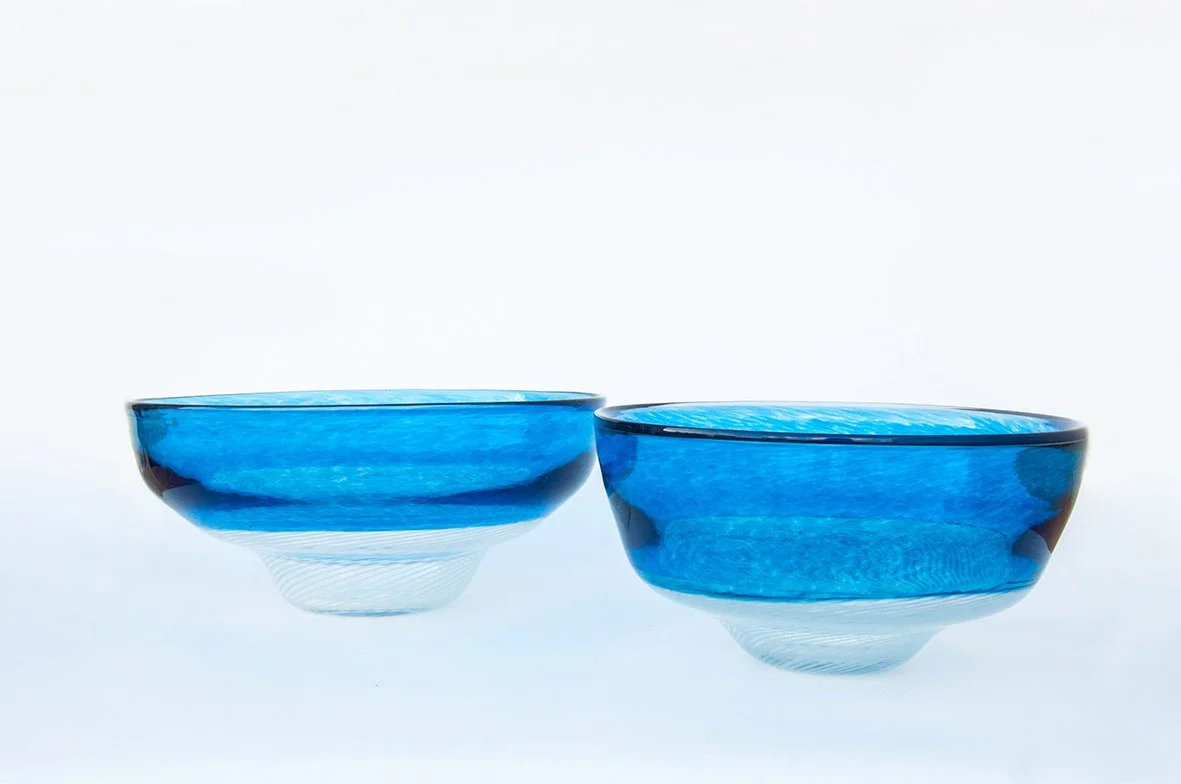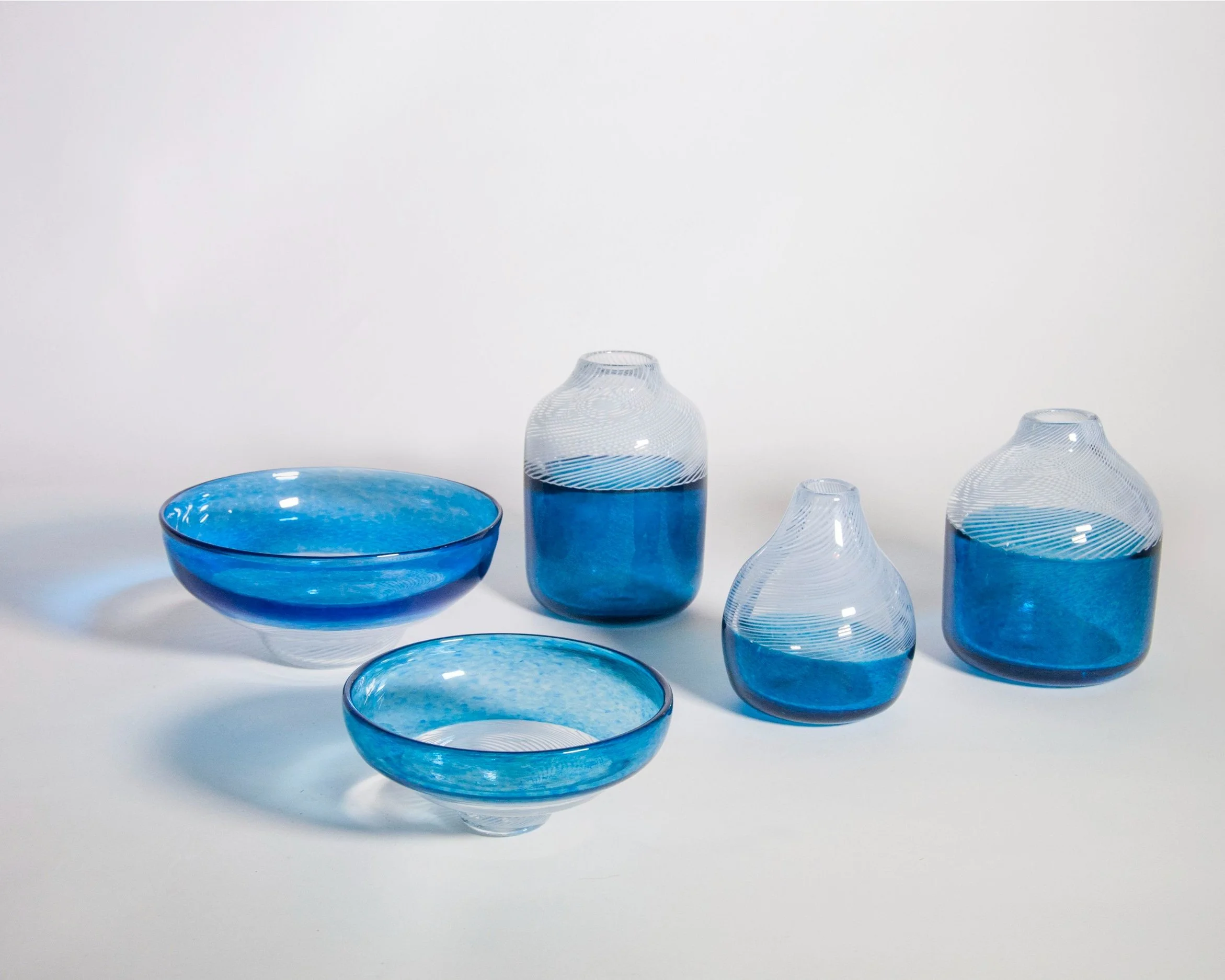 ​This unique collection seamlessly merges the in-calmo technique with "Çeşm-i Bülbül," a traditional Ottoman glassblowing technique. Crafted by skilled Turkish glassblowers, each piece is handmade, resulting in variations in colour and size that add to the distinctive charm of these items, underscoring their artisanal and handcrafted nature.