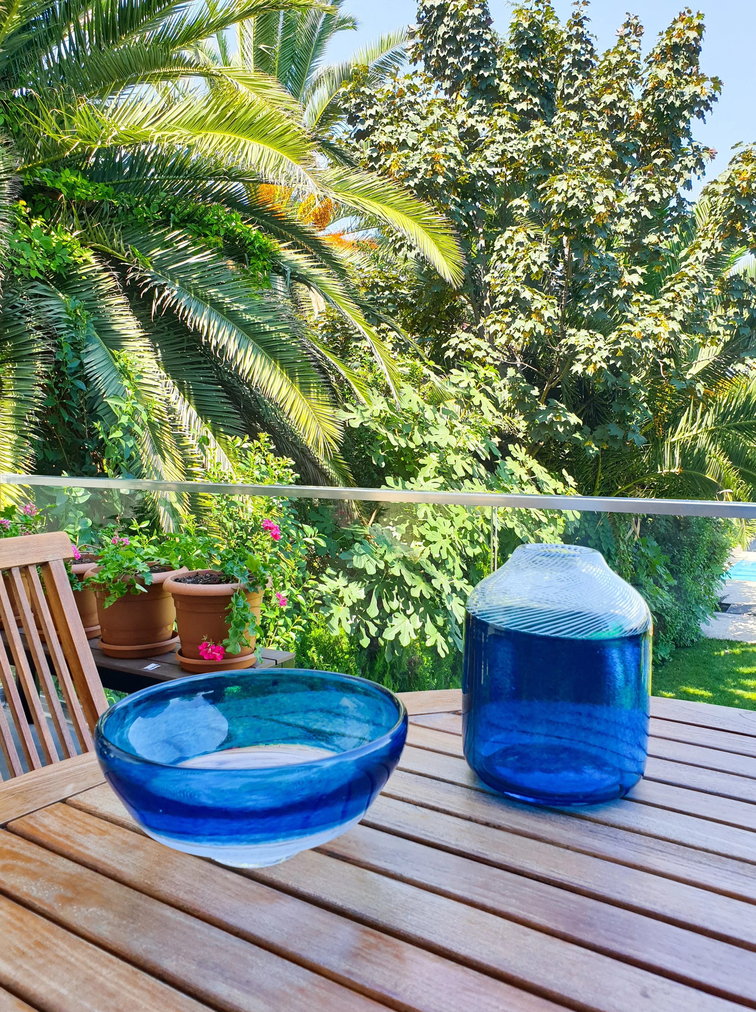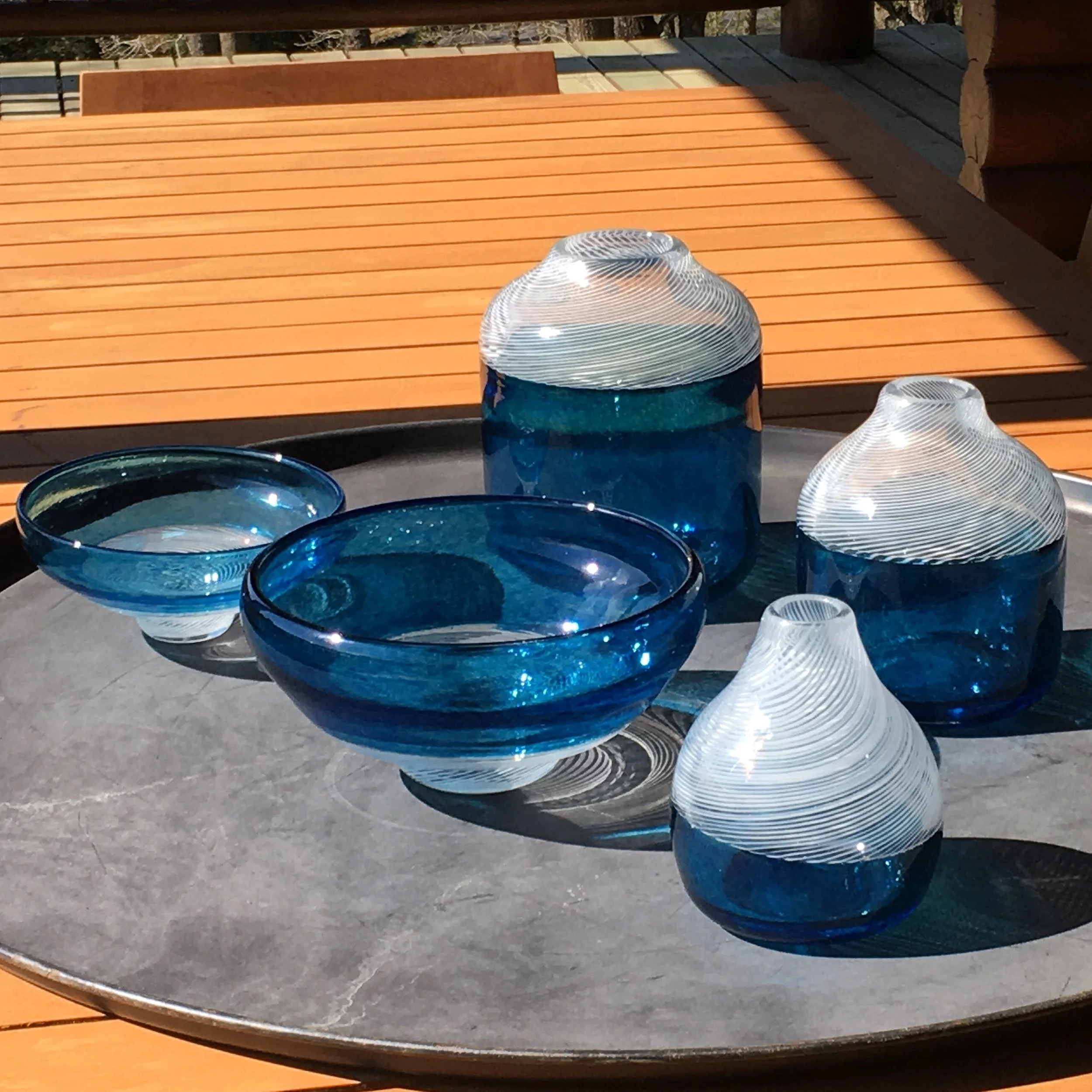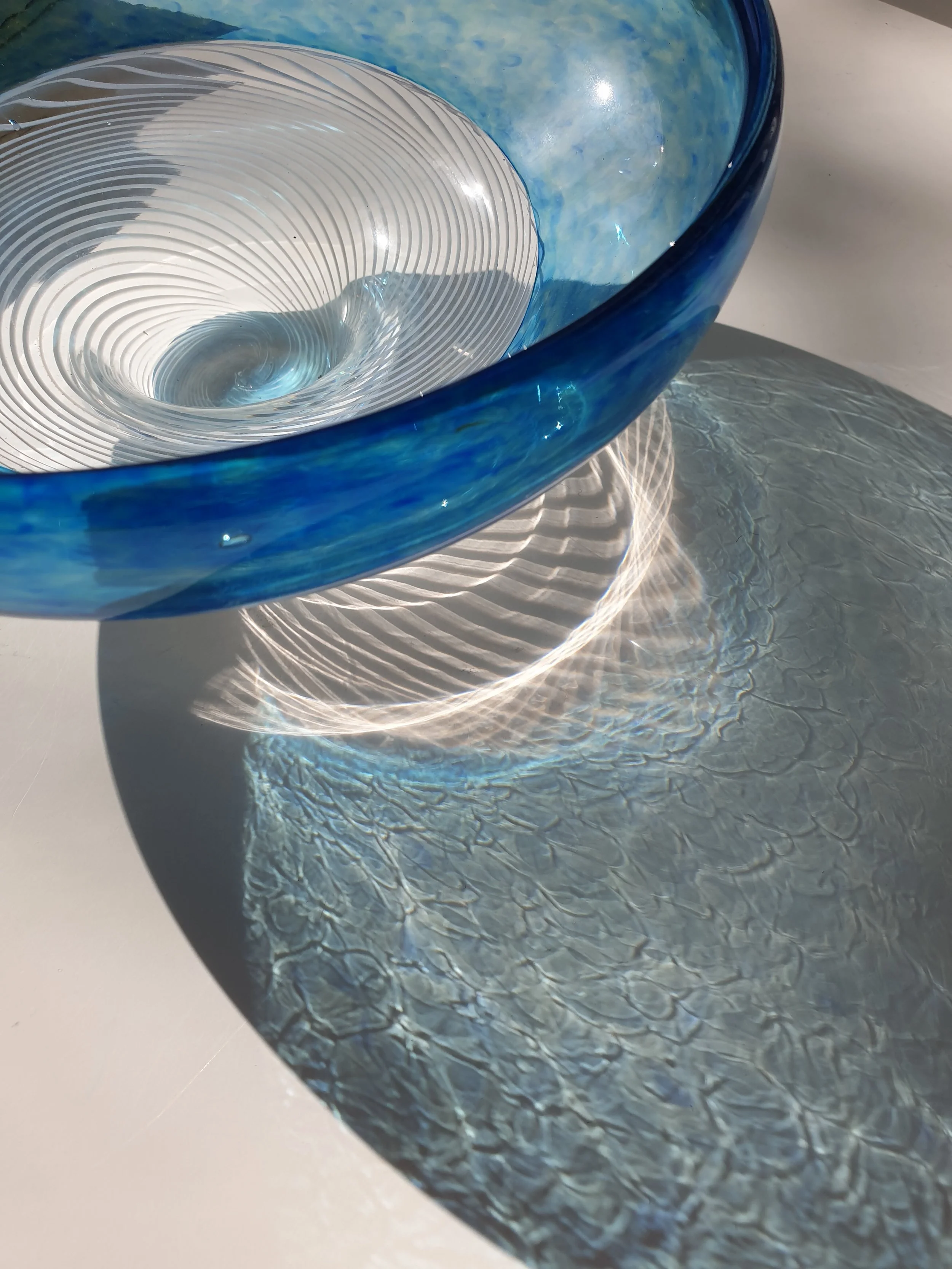 ​This unique collection seamlessly merges the in-calmo technique with "Çeşm-i Bülbül," a traditional Ottoman glassblowing technique. Crafted by skilled Turkish glassblowers, each piece is handmade, resulting in variations in colour and size that add to the distinctive charm of these items, underscoring their artisanal and handcrafted nature.